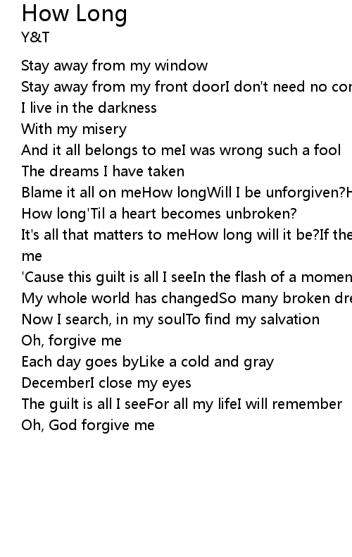| Blame it all on meHow longWill I be unforgiven? How long will it be? | |