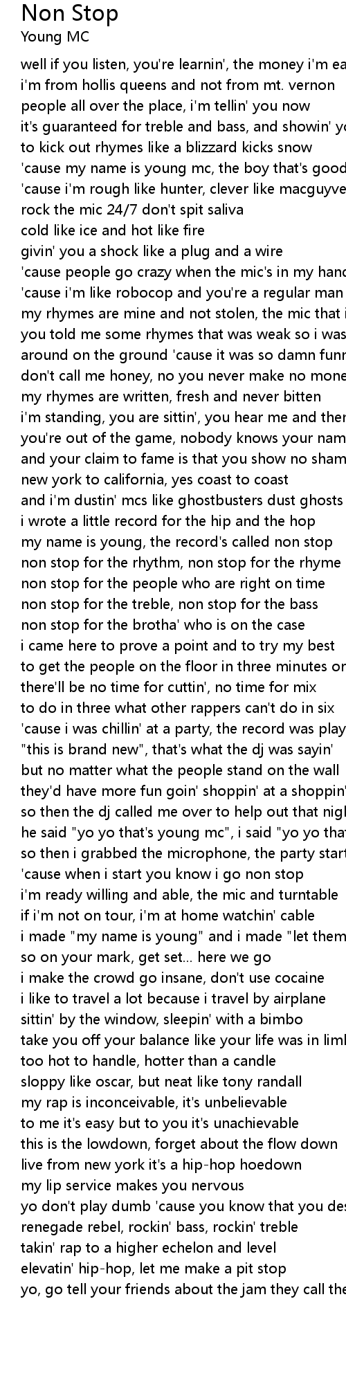 yo, go tell your friends about the jam they call the non stop