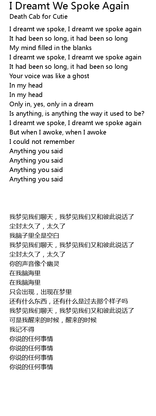 I dreamt we spoke, I dreamt we spoke again |