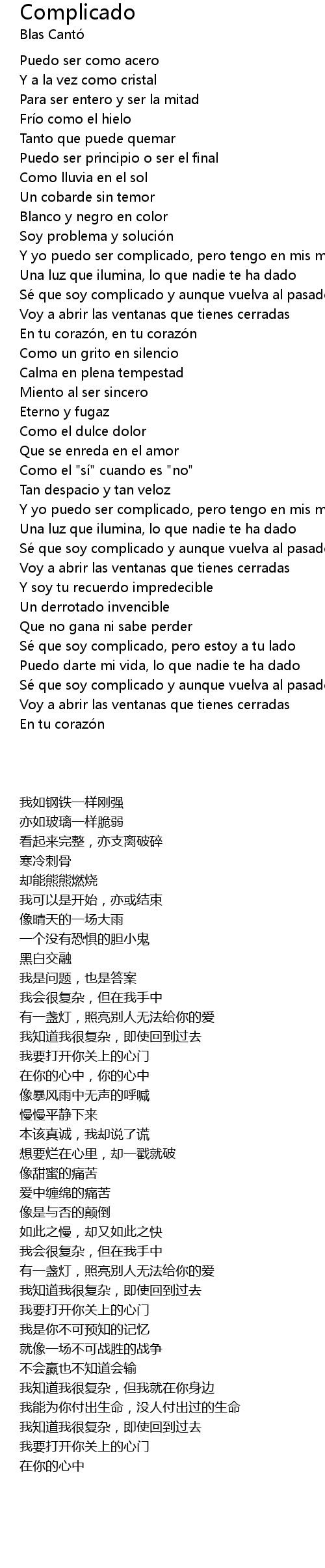 | [02:56.32] | Se que soy complicado, pero estoy a tu lado |