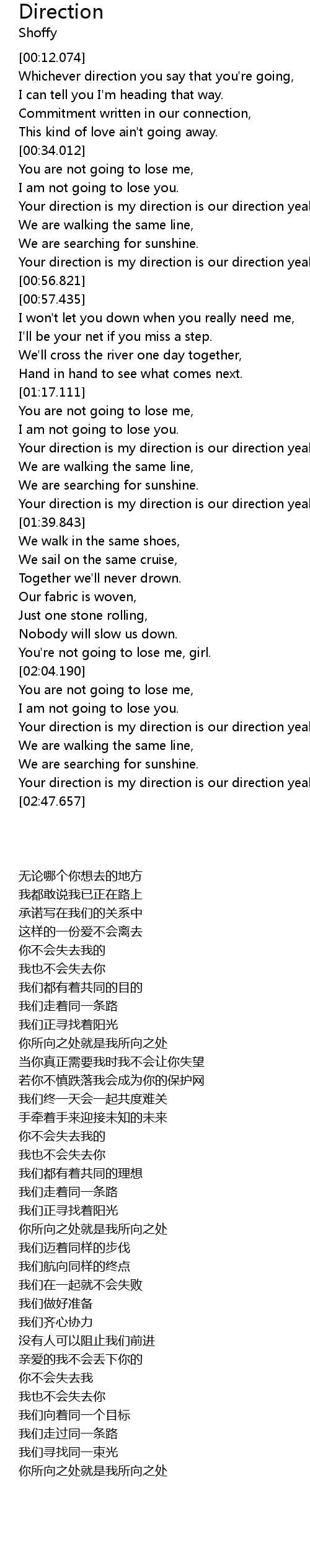 | [00:40.498] | Your direction is my direction is our direction yeah. |