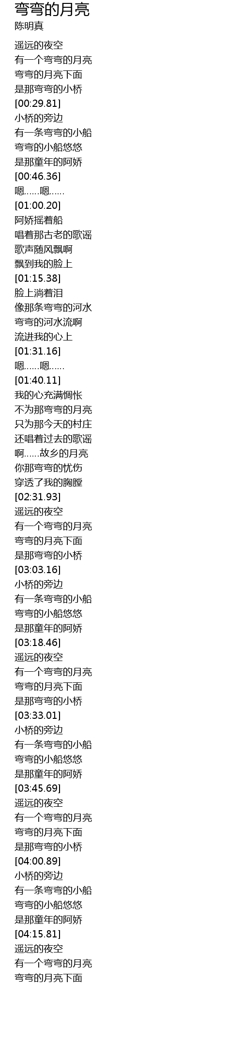 | [04:20.06] | yǒu yí gè wān wān de yuè liàng |