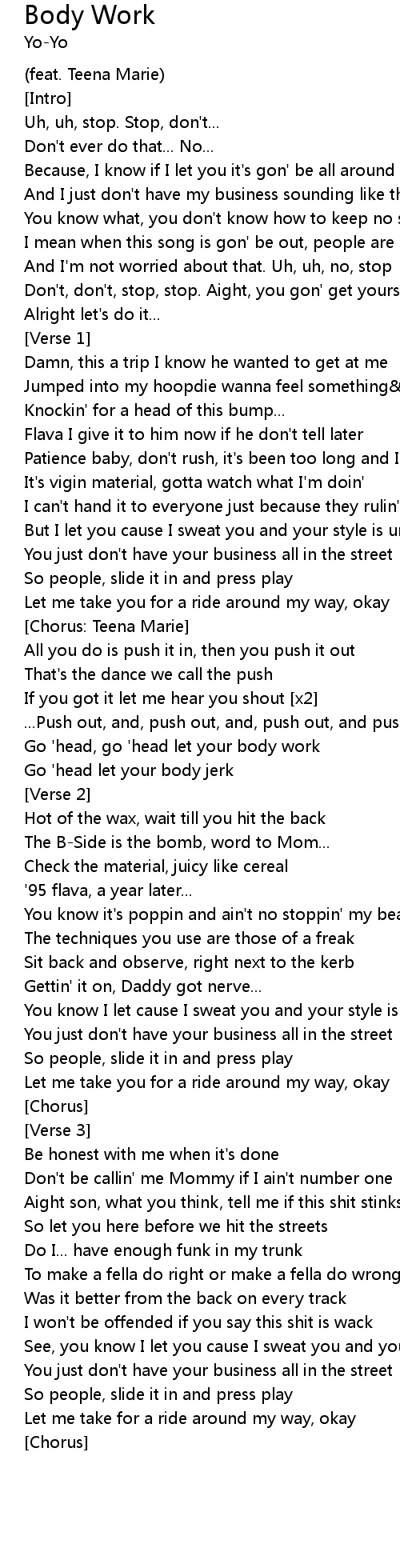 Body Work Lyrics