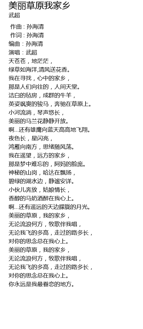 | [03:59.63] | 美丽的草原,我的家乡, |