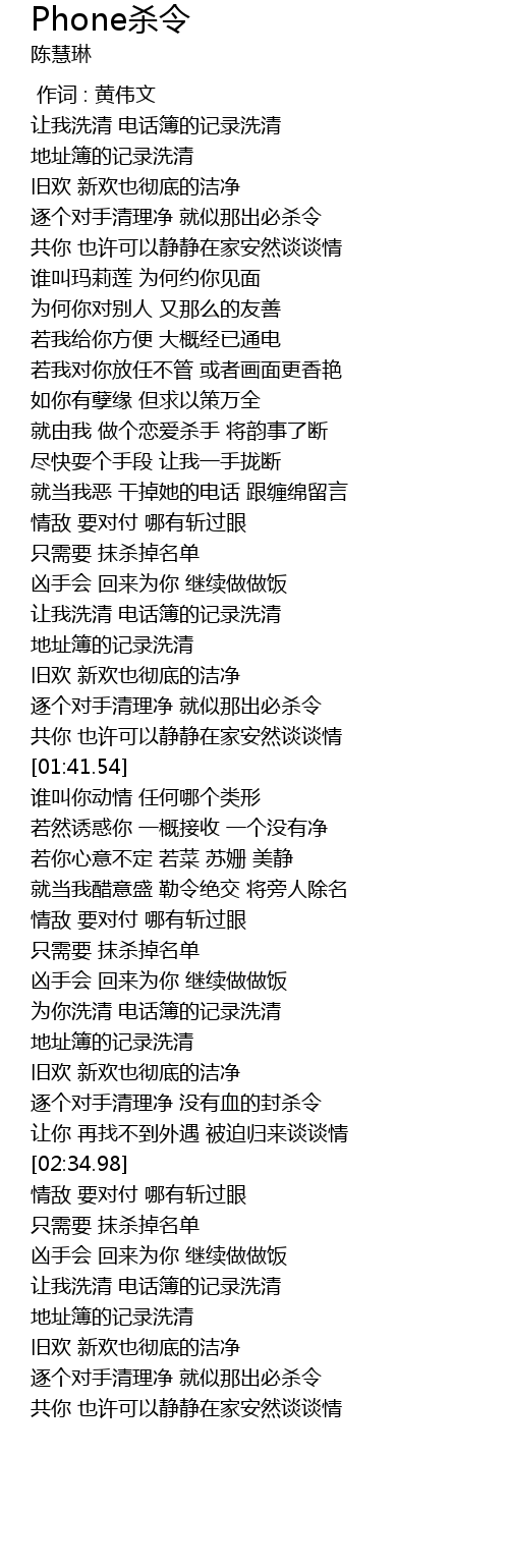| [03:02.34] | 让我洗清 电话簿的记录洗清 |