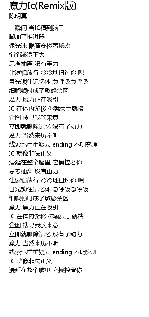 | [02:38.70] | IC 在体内游移 你就束手就擒 |
