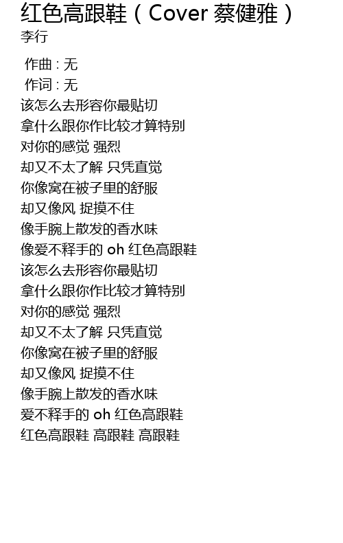 | [00:49.43] | 像爱不释手的 oh 红色高跟鞋 |