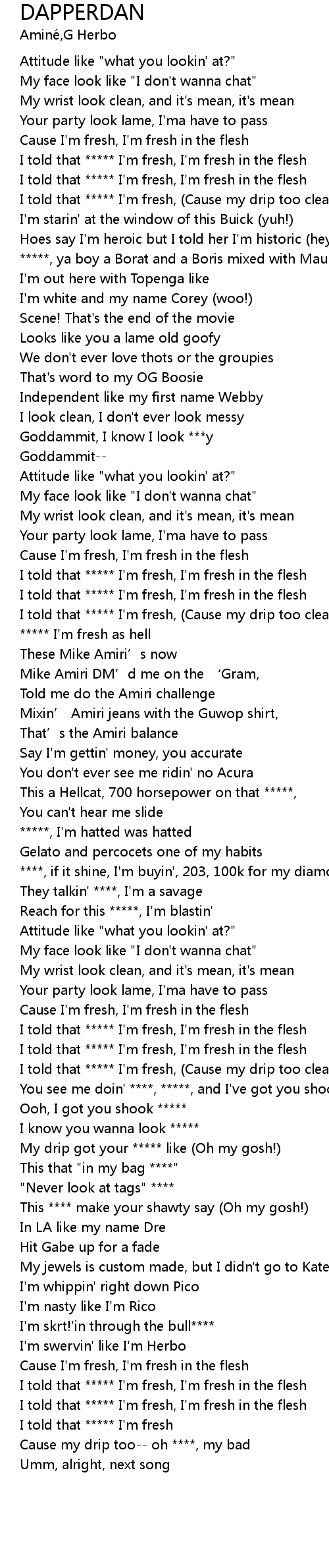 | [02:46.23] | Cause my drip too-- oh ****, my bad |