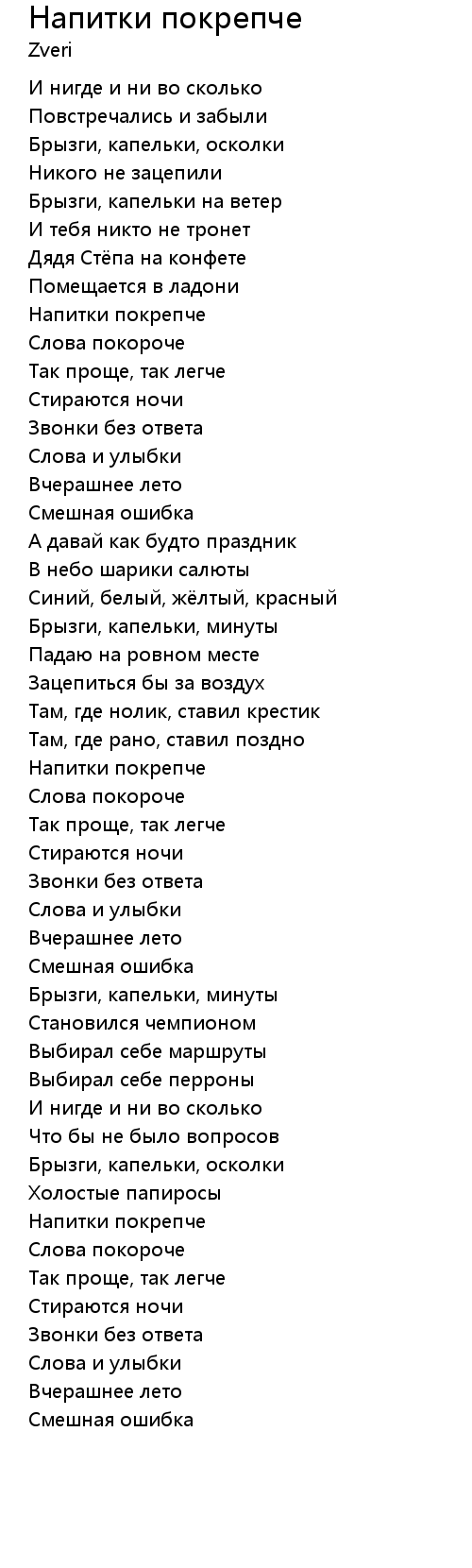 Напитки покрепче  Lyrics