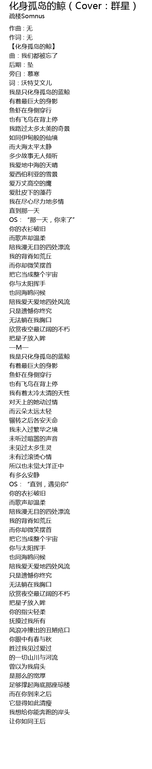 | Song | 化身孤岛的鲸(Cover:群星) |