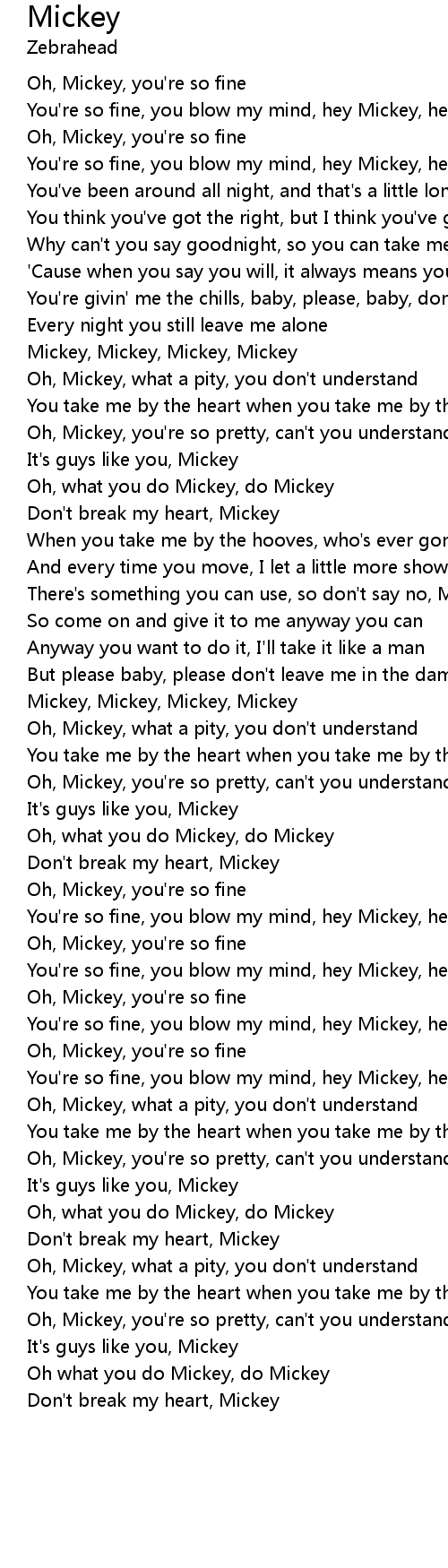 Oh, Mickey, you're so fine |