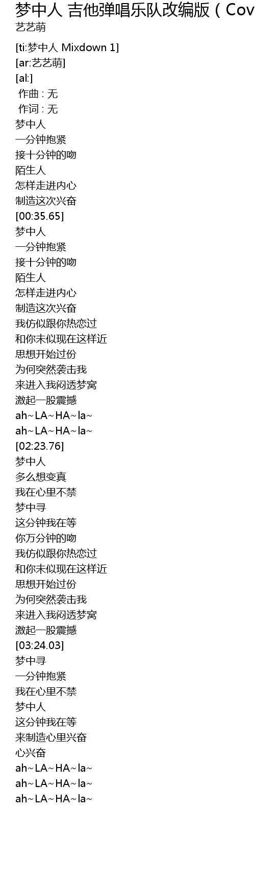 | Song | 梦中人 吉他弹唱乐队改编版(Cover 王菲) |