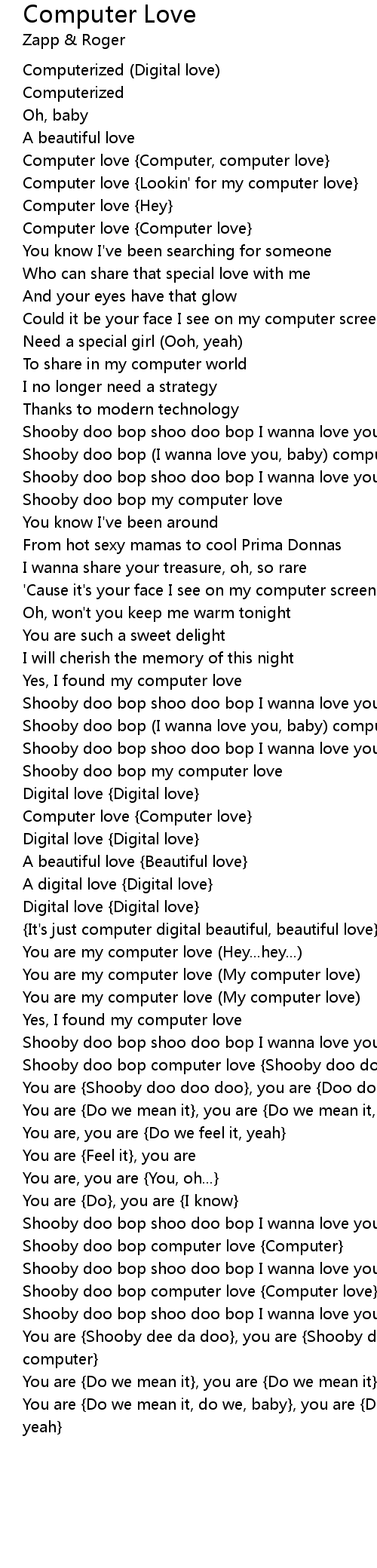 Shooby doo bop computer love {Computer love}
