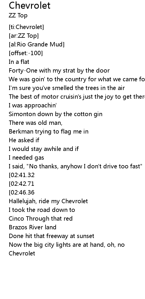 [01:06.99][02:46.36] Chevrolet Hallelujah,