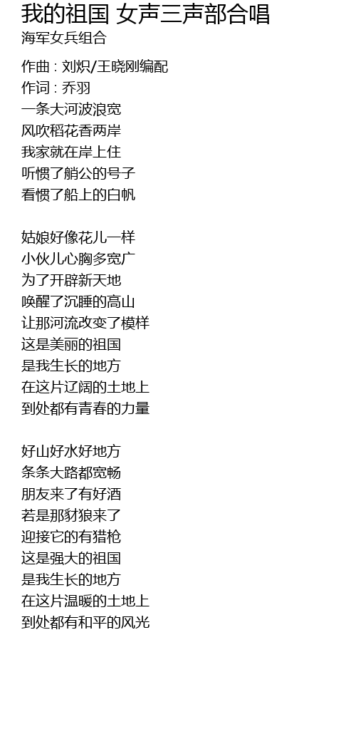 | Song | 我的祖国 女声三声部合唱 |