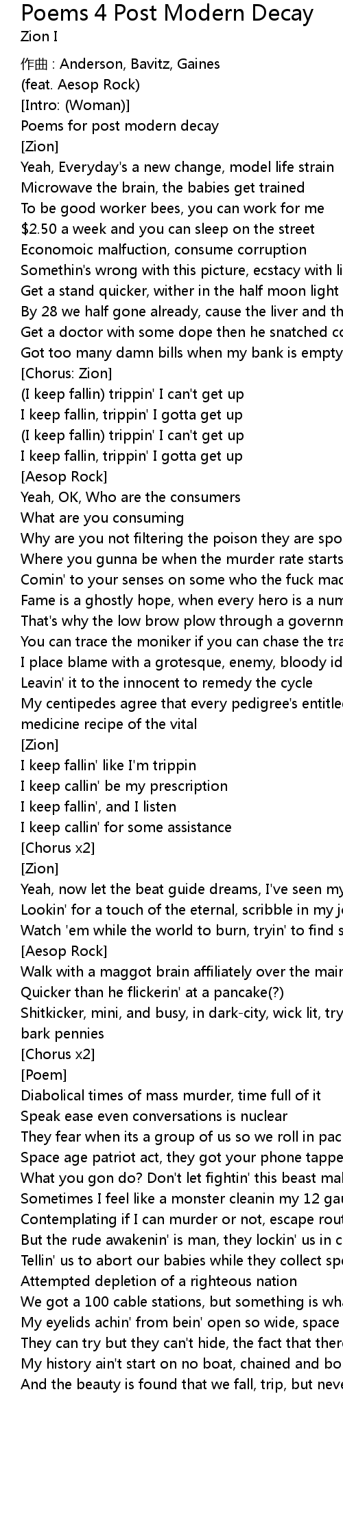 | Song | Poems 4 Post Modern Decay |