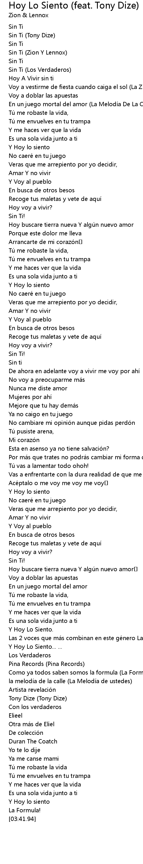 | Song | Hoy Lo Siento (feat. Tony Dize) |