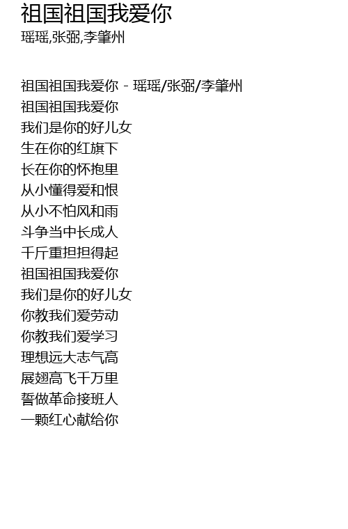| zǔ guó zǔ guó wǒ ài nǐ | |