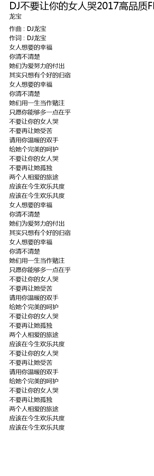 | Song | DJ不要让你的女人哭2017高品质FL原创舞曲 |