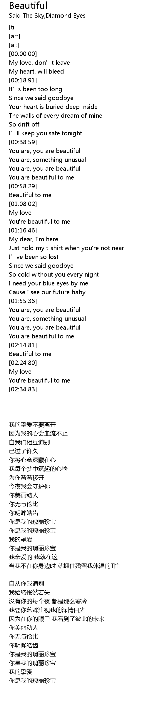 | [00:38.62] | You are, you are beautiful |