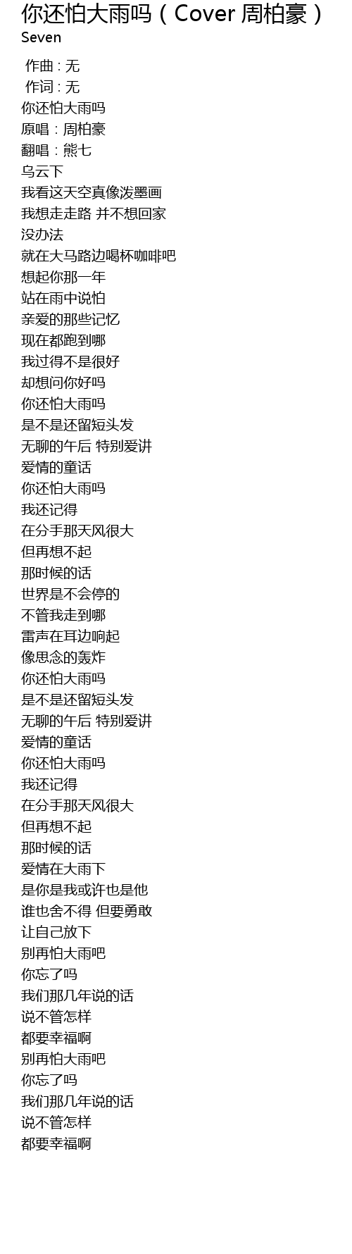 | [00:03.35] | nǐ hái pà dà yǔ ma |