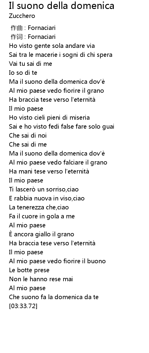 | [03:26.78] | Che suono fa la domenica da te |