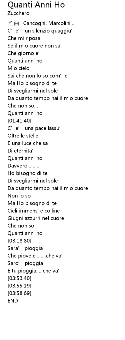 | [02:39.54] | Da quanto tempo hai il mio cuore |