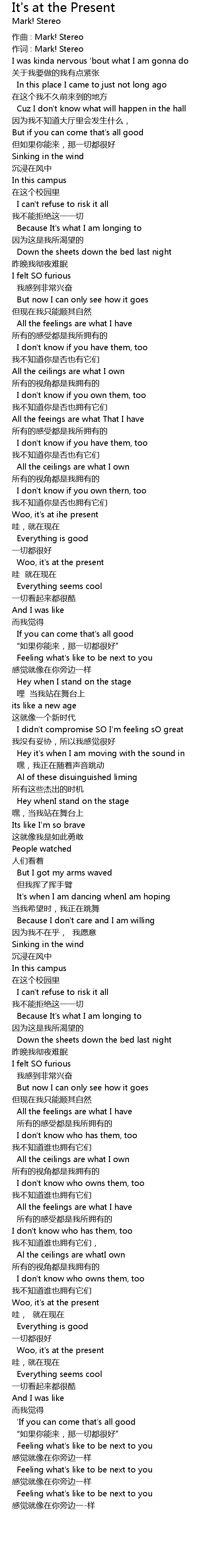 | 作词 : Mark! Stereo | |