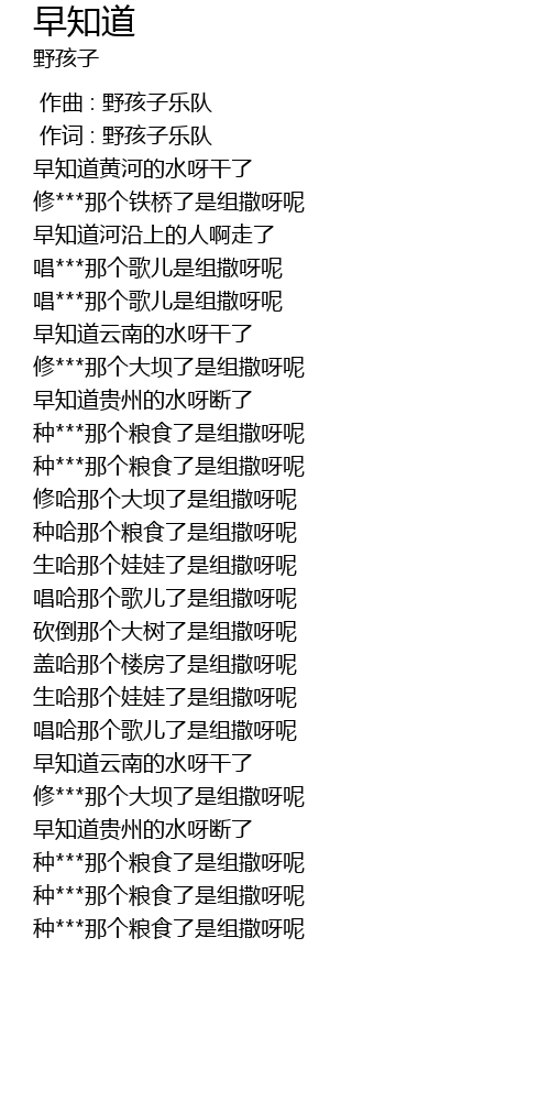 | [00:01.000] | 作词 : 野孩子乐队 |