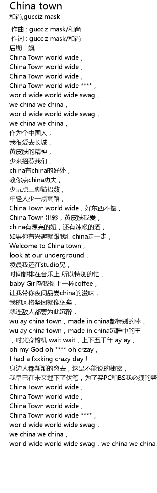 | [02:03.943] | world wide world wide swag,we china we china... |