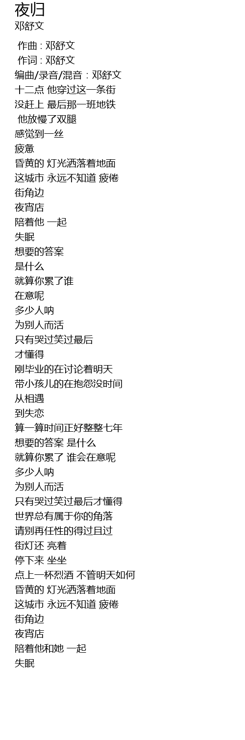 | [00:00.00] | 编曲/录音/混音:邓舒文 |