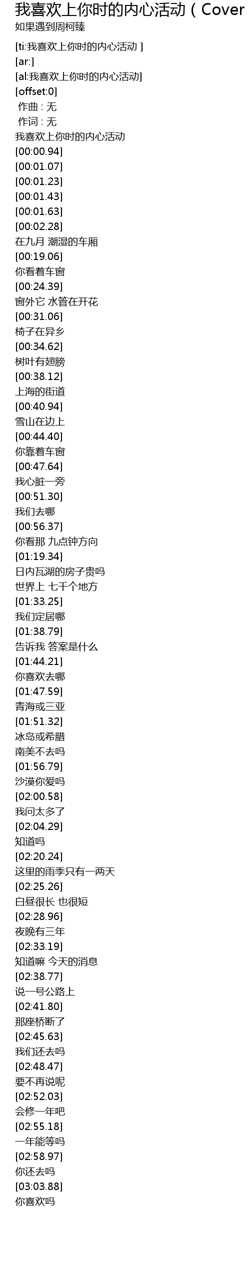 | [ti:我喜欢上你时的内心活动 ] | |