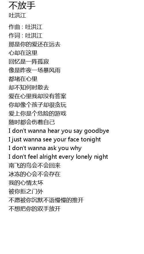 | bù xiǎng bǎ nǐ de shuāng shǒu fàng kāi |