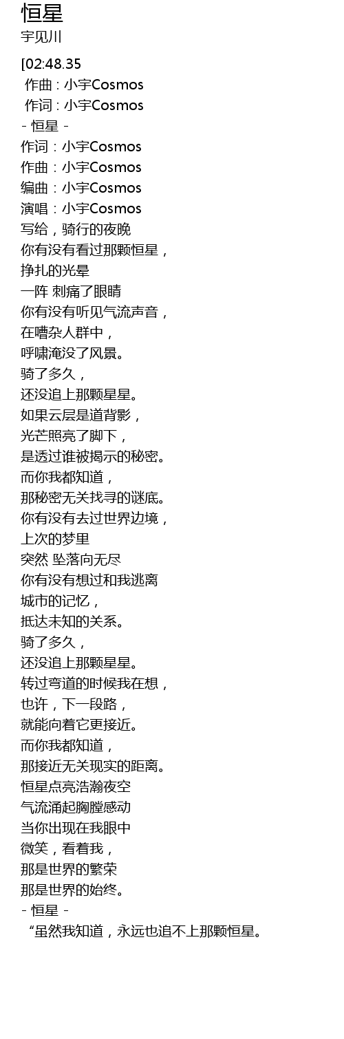 | [00:02.80] | 作词:小宇Cosmos |
