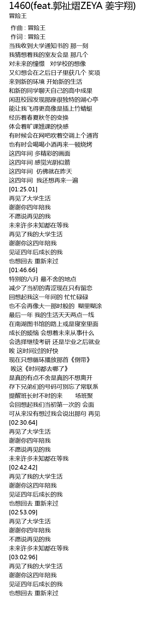 | [01:26.97] | zài jiàn le dà xué shēng huó |