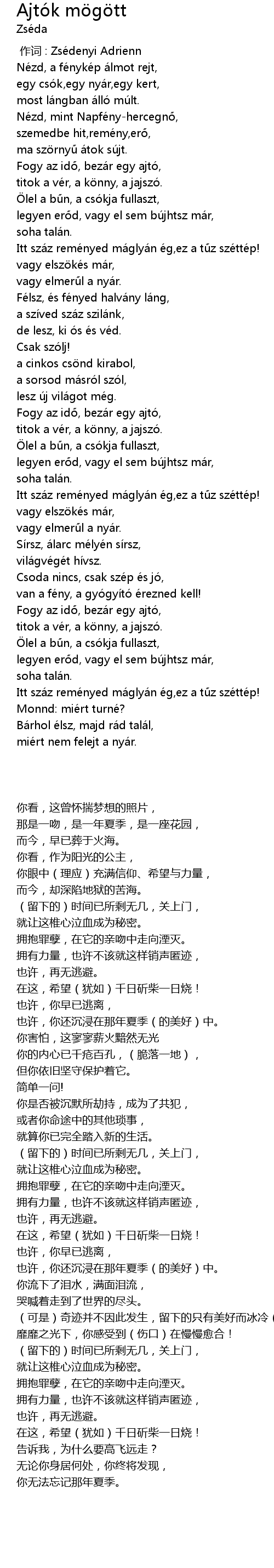 | [00:00.00] | zuò cí : Zsé denyi Adrienn |
