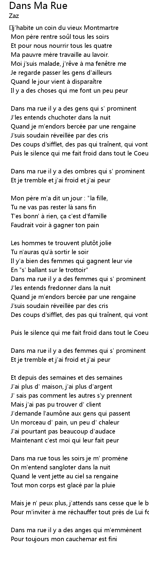 | Dans ma rue il y a des anges qui m' emmè nent | |