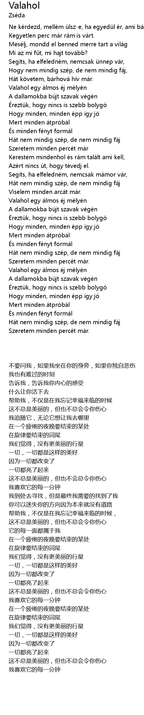 | [00:20] | Ne ké rdezd, mellé m ü lsze, ha egyedü l é r, ami bá nt |