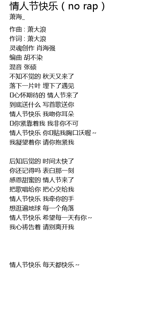 | qíng rén jié kuài lè xī wàng měi yì tiān yǒu nǐ | |