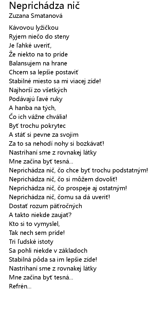 | Neprichádza nič, čo chce byť trochu podstatným! | |