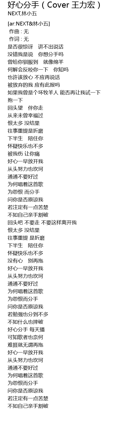 | [01:39.17] | 回头吧 不要走 不要这样离开我 |
