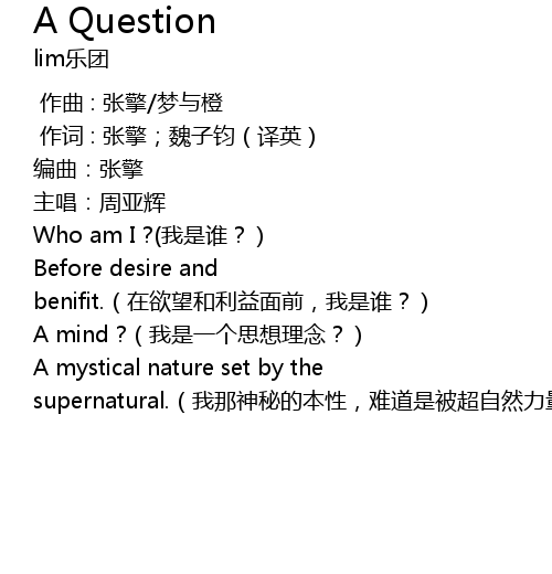 | [00:19.00] | Who am I ? wǒ shì shuí? |
