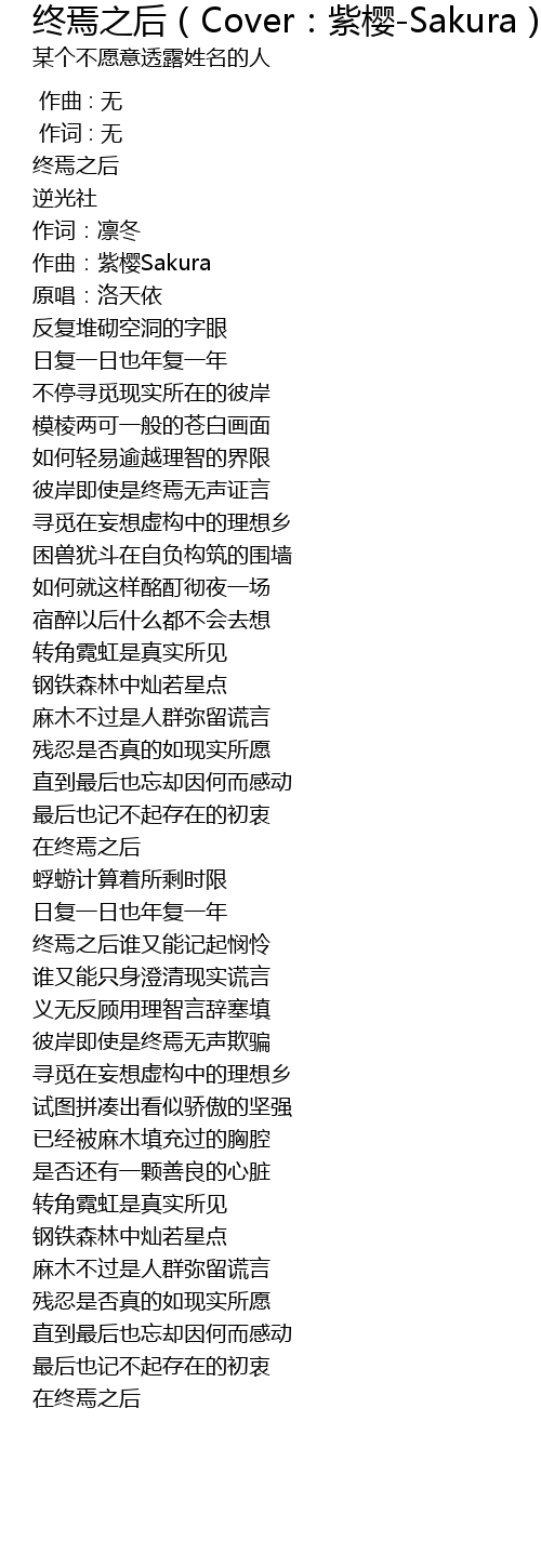 | Song | 终焉之后(Cover:紫樱-Sakura) |