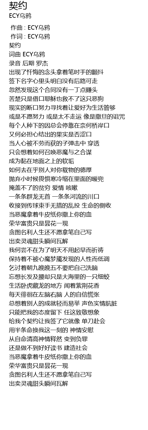 | [00:01.000] | 作词 : ECY乌鸦 |
