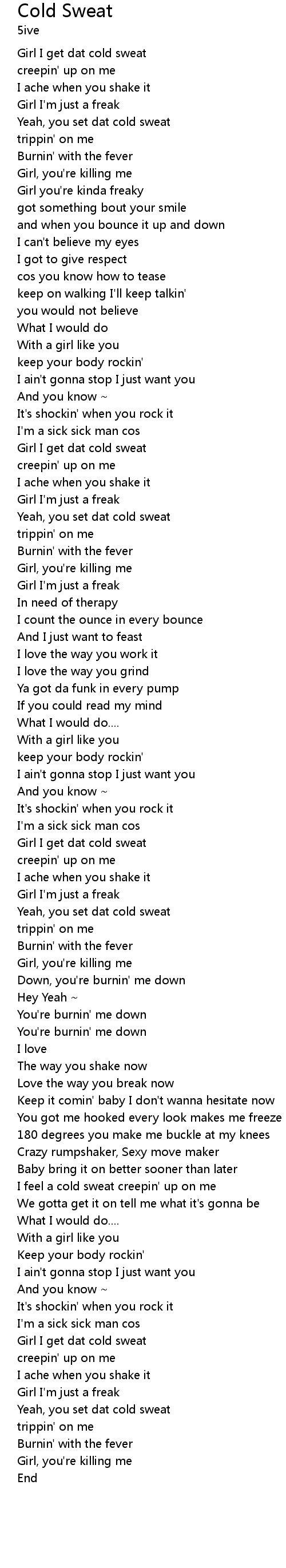 Girl I get dat cold sweat |