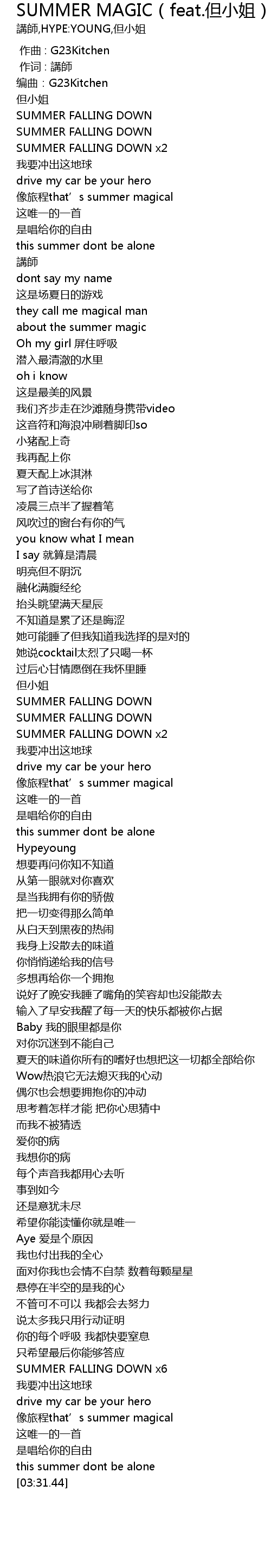 | [02:59.91] | SUMMER FALLING DOWN x6 |