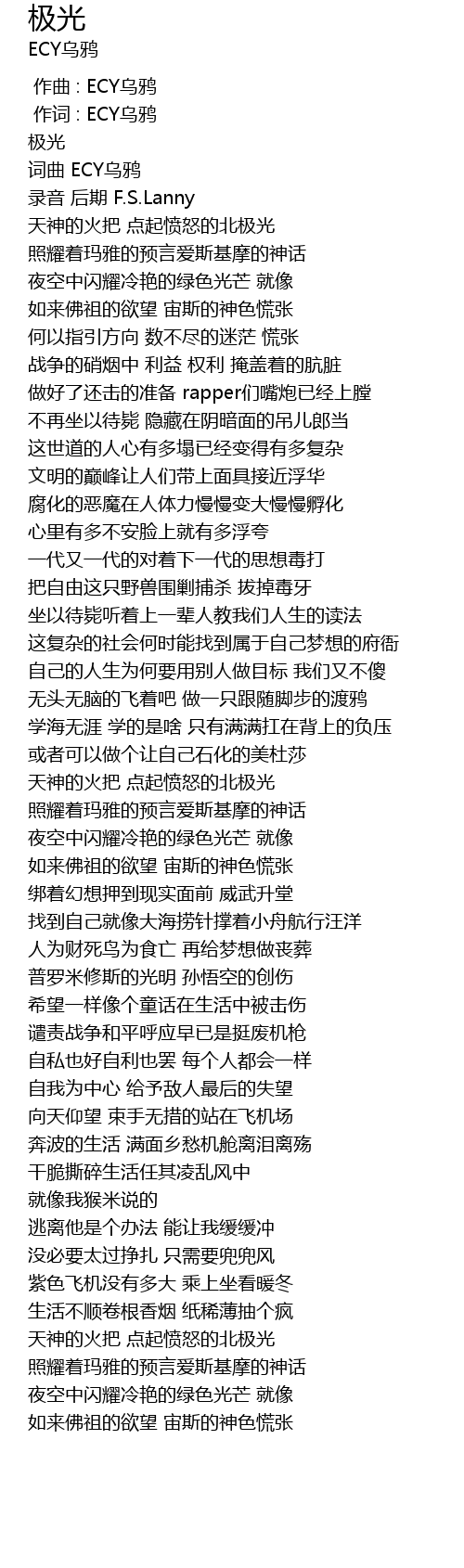 | [00:01.000] | 作词 : ECY乌鸦 |