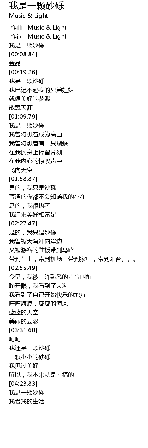 | [00:39.18] | wǒ shì yī kē shā lì |