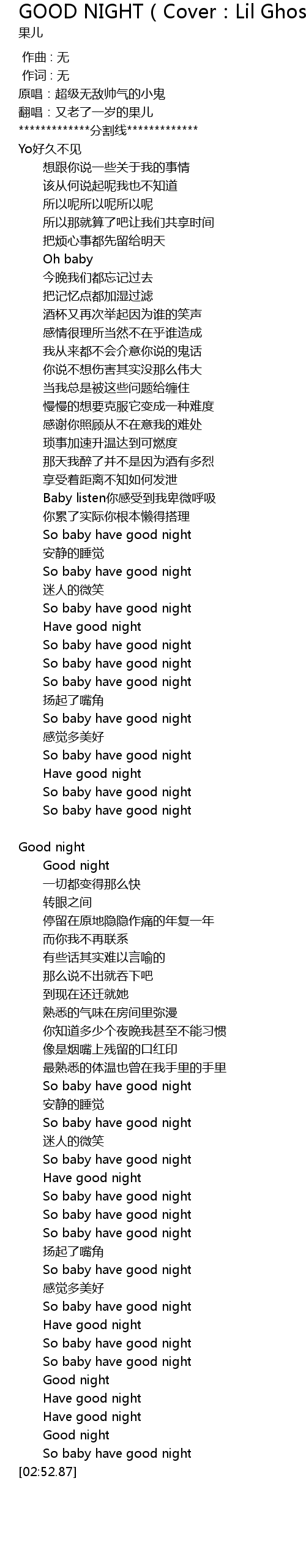 | Song | GOOD NIGHT(Cover:Lil Ghost小鬼) |