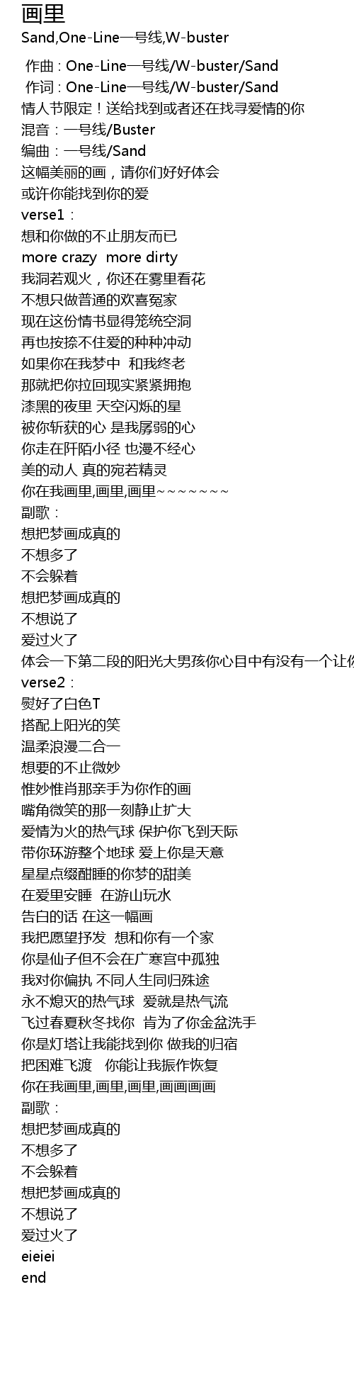 | [00:00.000] | 作词 : One-Line一号线/W-buster/Sand |